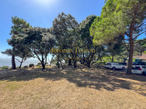 La terrasse à l'ombre des pins offre un bel espace extérieur pour profiter pleinement du calme et de la proximité immédiate de la plage.