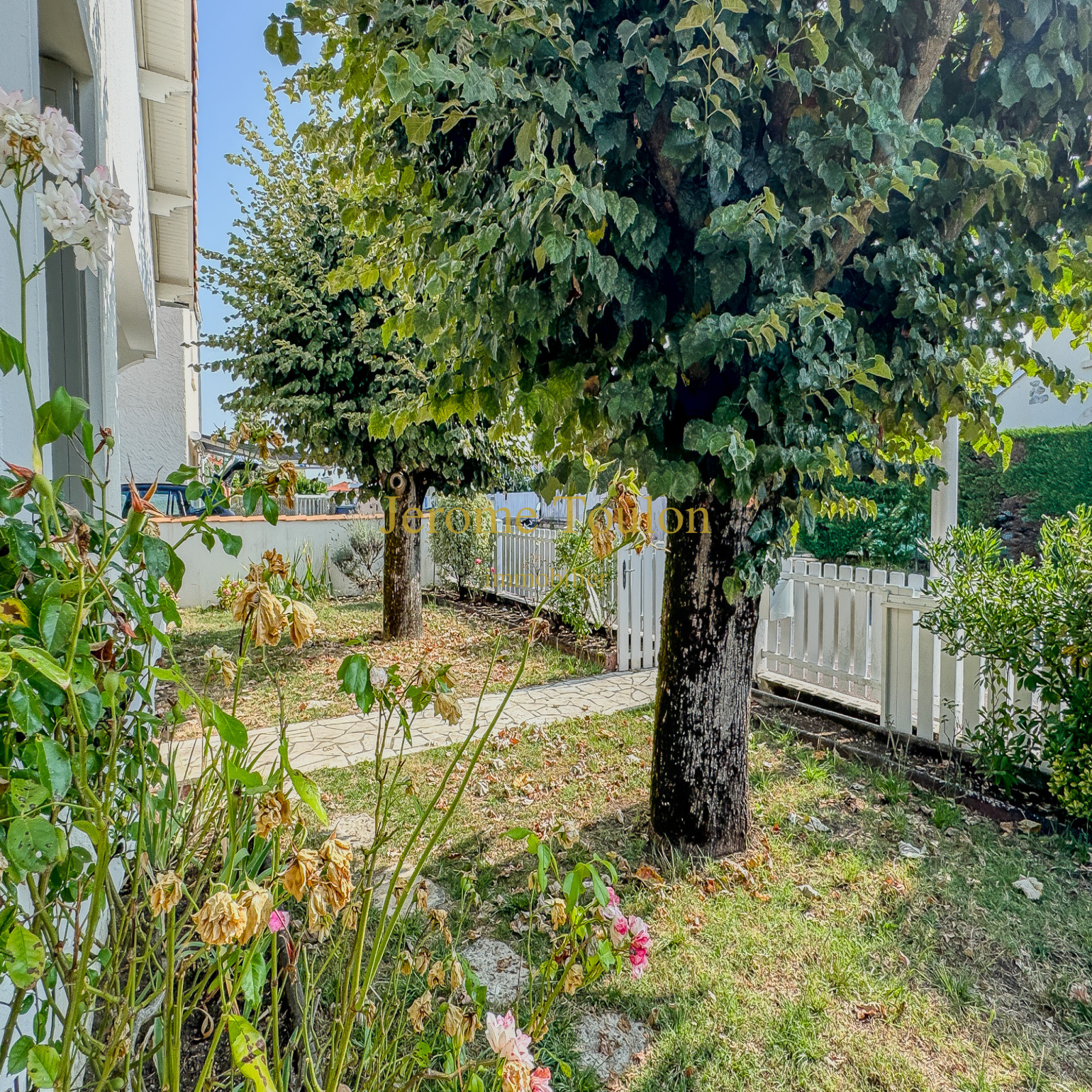 Son joli jardin clos de 262 m² est aménagé avec une place de stationnement.