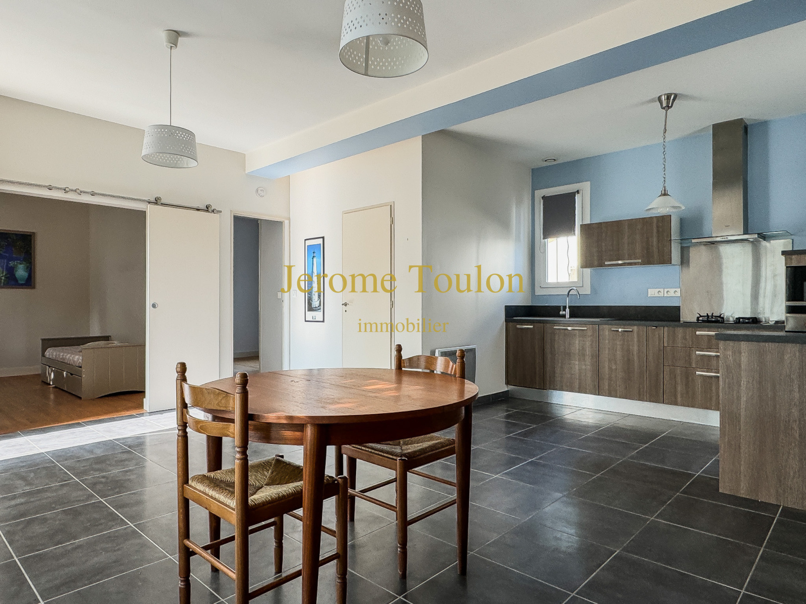 Vous découvrirez un séjour avec une cuisine américaine équipée et aménagée ouvrant sur le jardin, 2 chambres dont une avec un placard, une salle d'eau avec un wc.