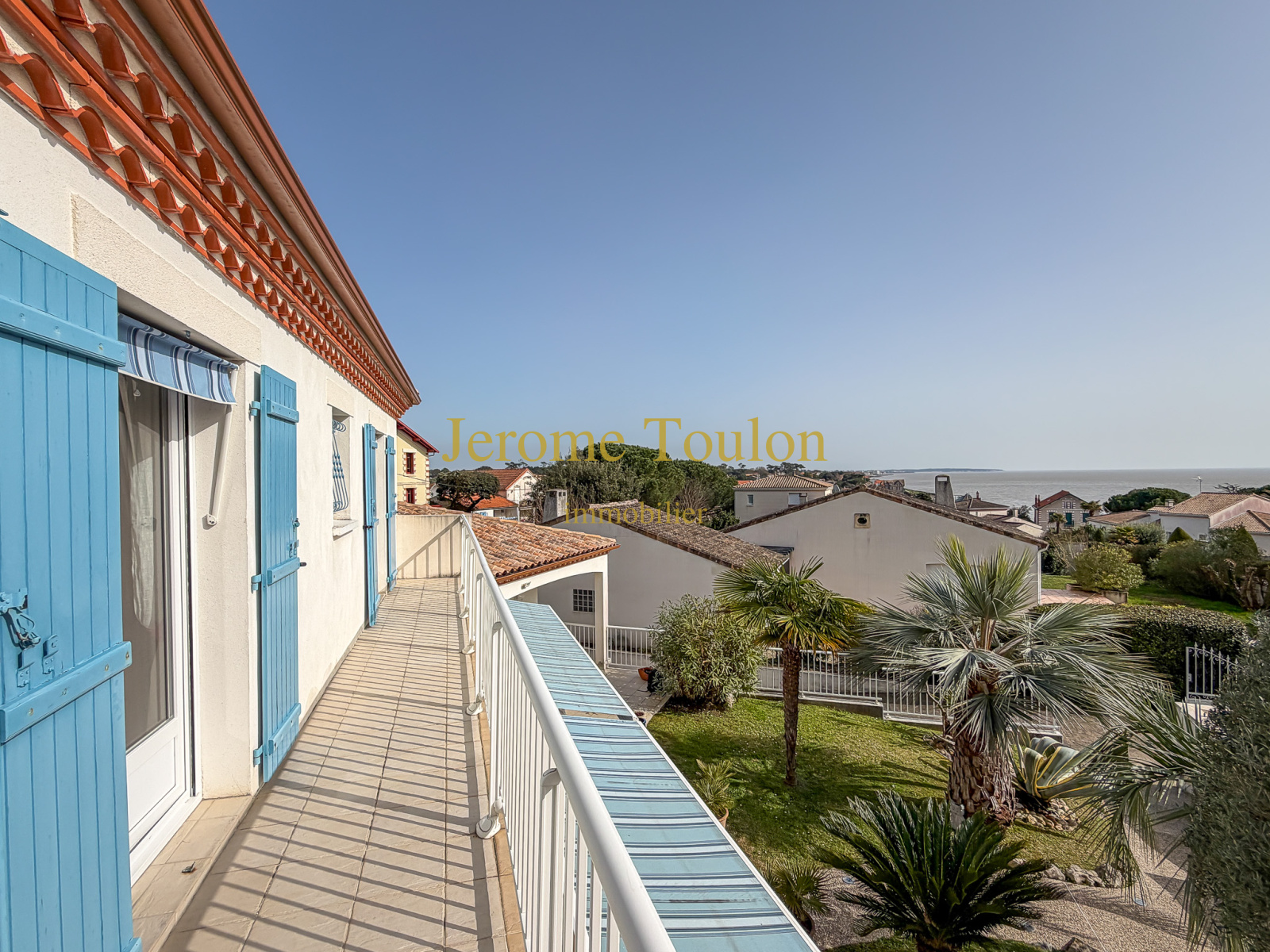 À l'étage, un palier très spacieux dessert 2 chambres ouvrant chacune sur un balcon avec une vue mer, une salle d'eau et un wc indépendant.