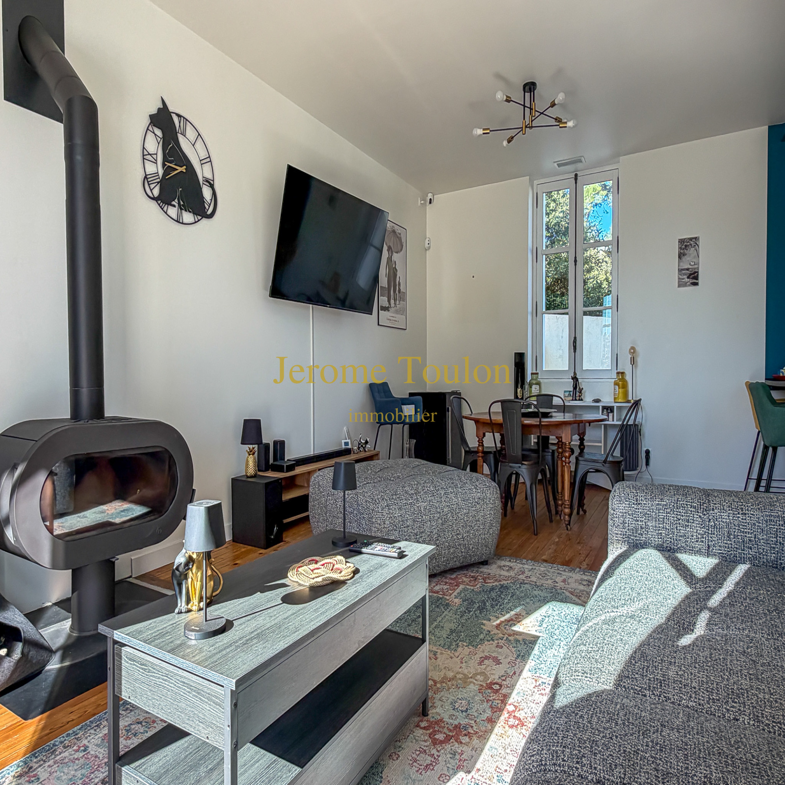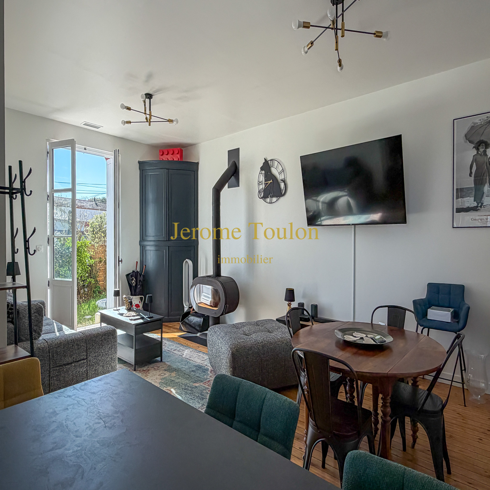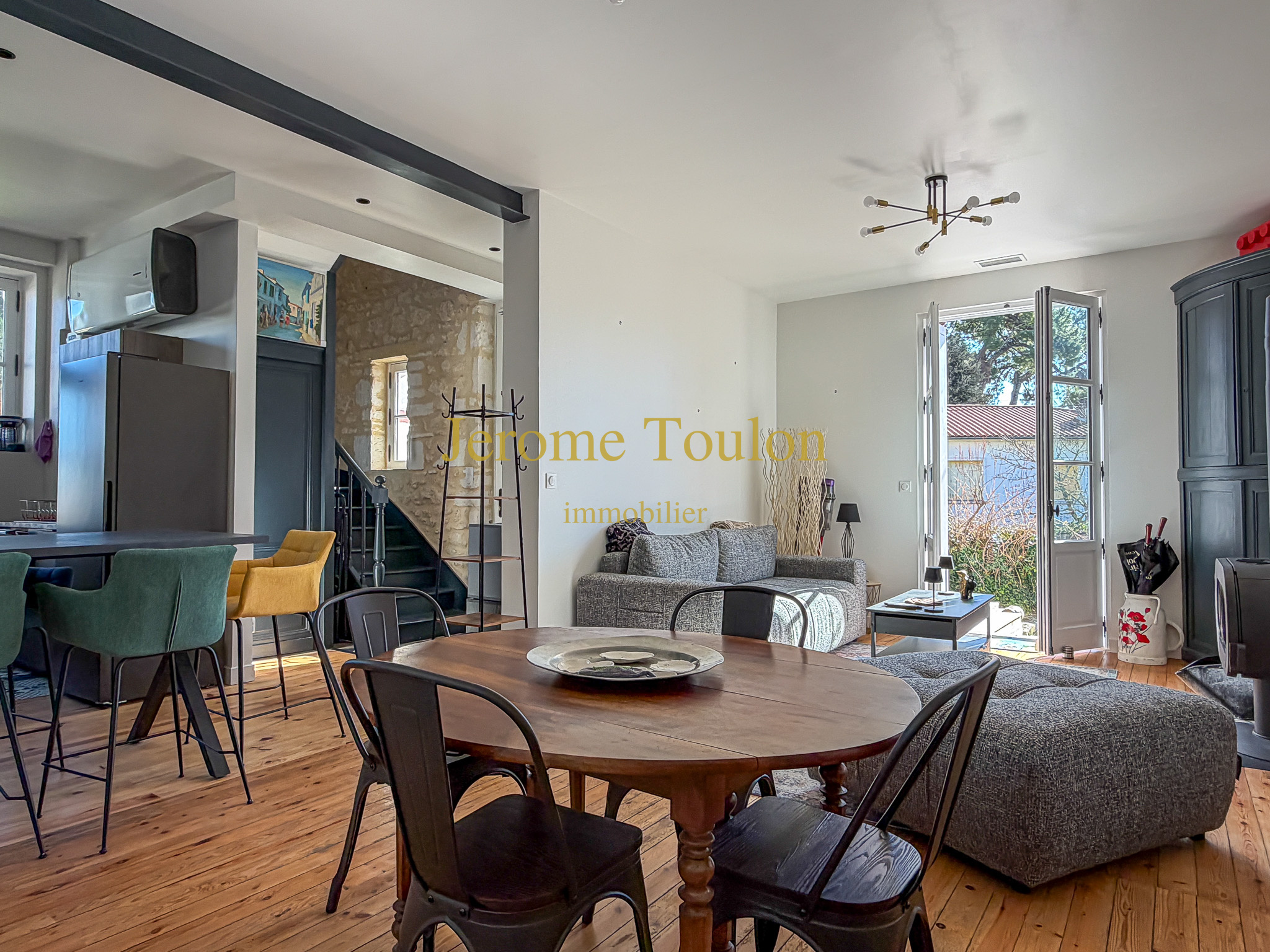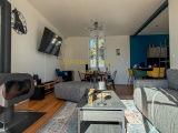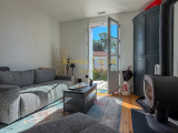 Vous découvrirez une entrée qui révèle immédiatement le charme et l’authenticité des lieux, une pièce à vivre agrémentée de son poêle à bois où la lumière s'invite à toute heure de la journée, une cuisine américaine parfaitement aménagée qui ouvre sur la terrasse en bois, un wc d'invité avec son lave-mains.