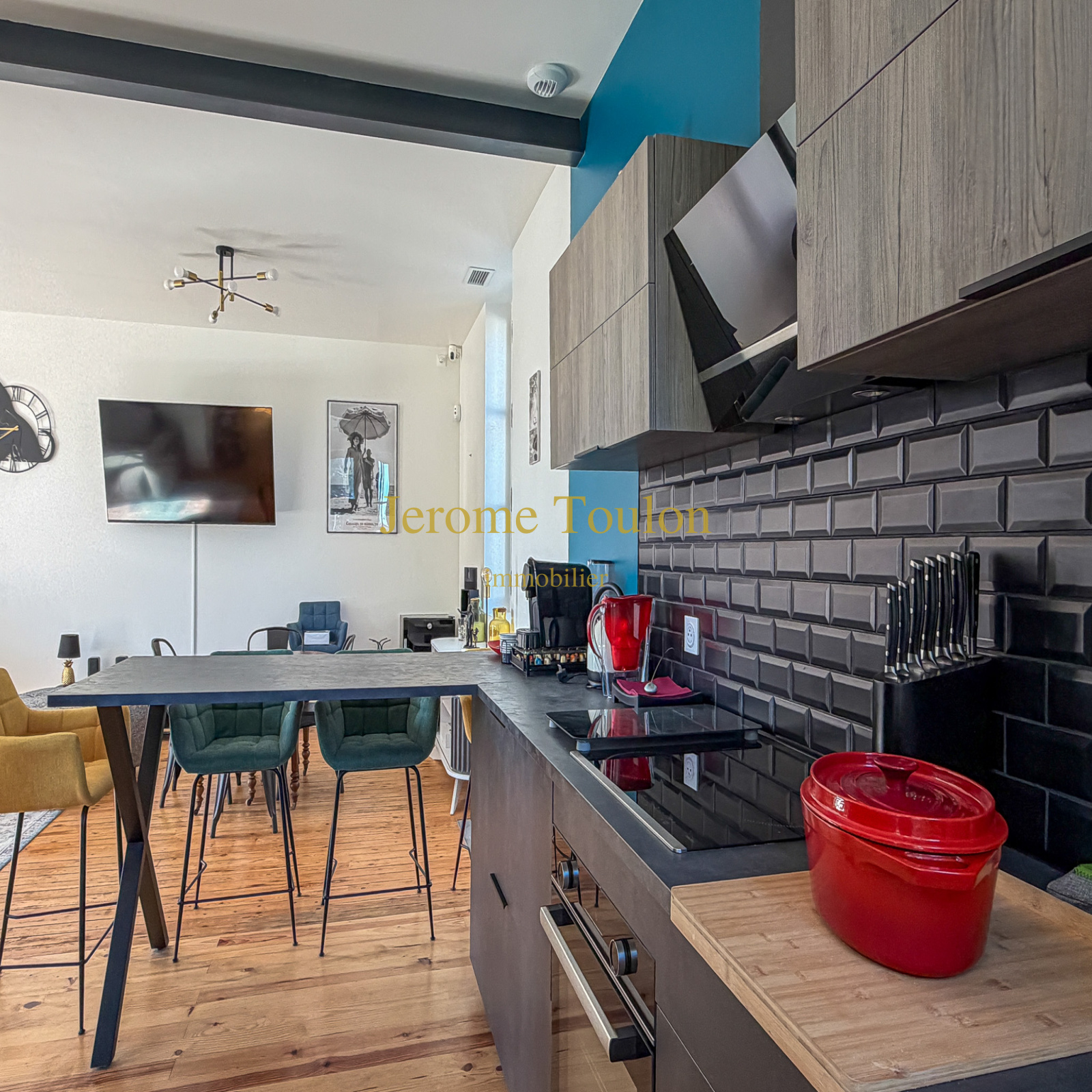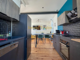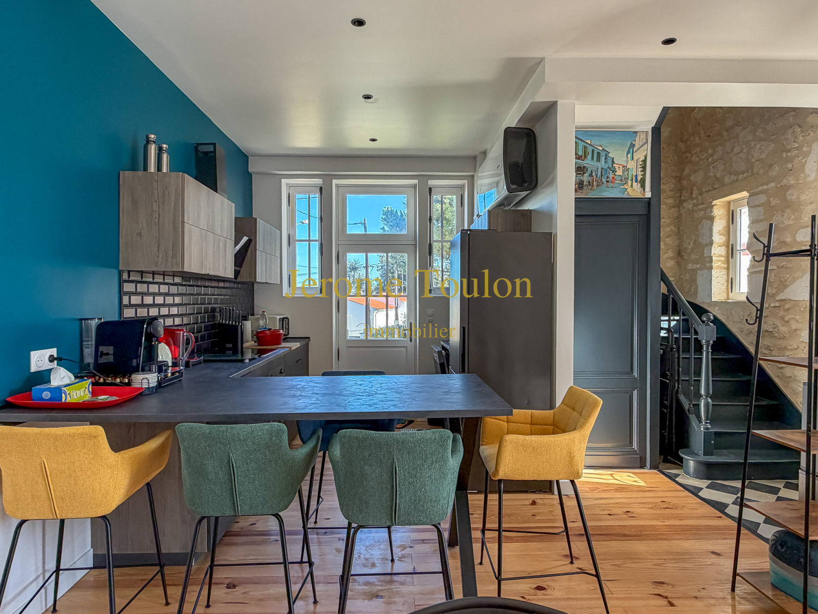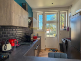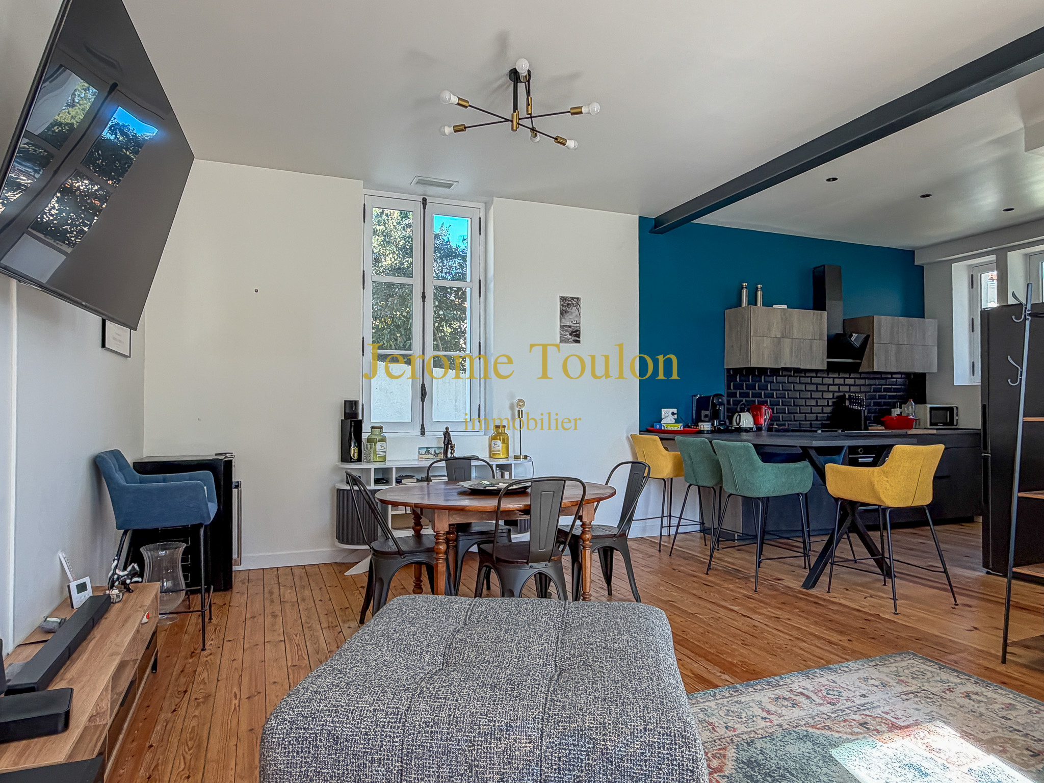 Vous découvrirez une entrée qui révèle immédiatement le charme et l’authenticité des lieux, une pièce à vivre agrémentée de son poêle à bois où la lumière s'invite à toute heure de la journée, une cuisine américaine parfaitement aménagée qui ouvre sur la terrasse en bois, un wc d'invité avec son lave-mains.