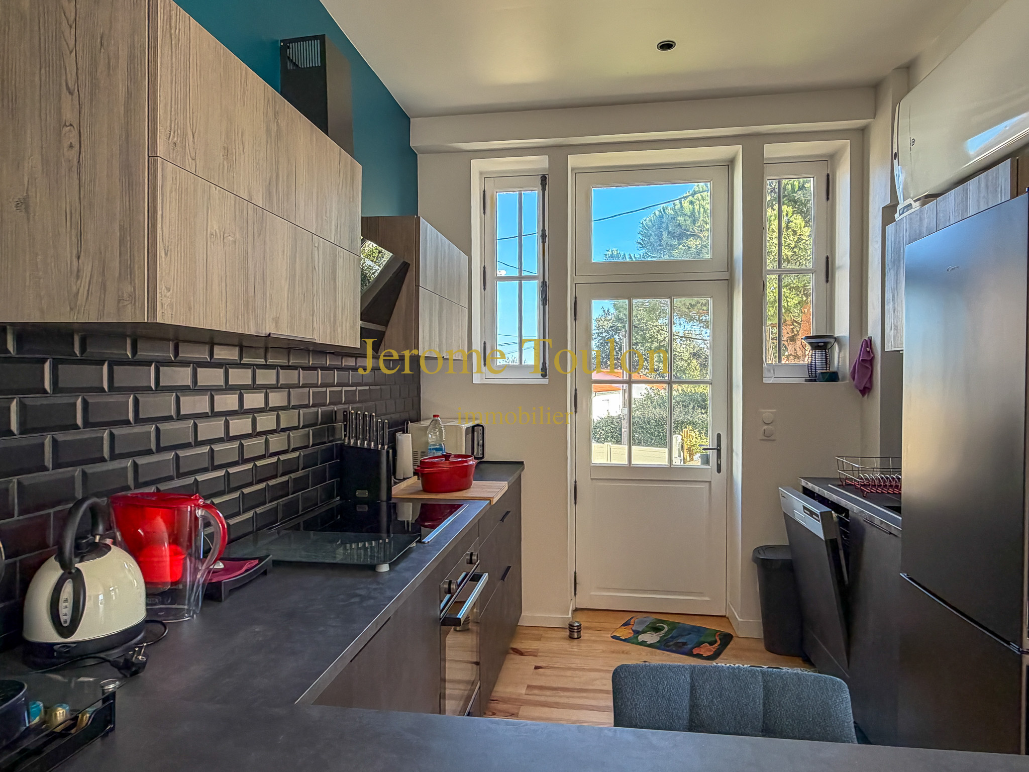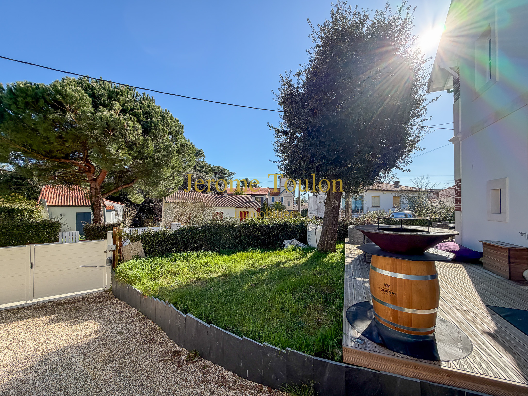 À l’extérieur, le jardin clos et paysager de 337 m², compose un écrin de verdure intime et apaisant. Une spacieuse terrasse en bois, une allée de stationnement et un espace de stockage viennent parfaire l’ensemble.