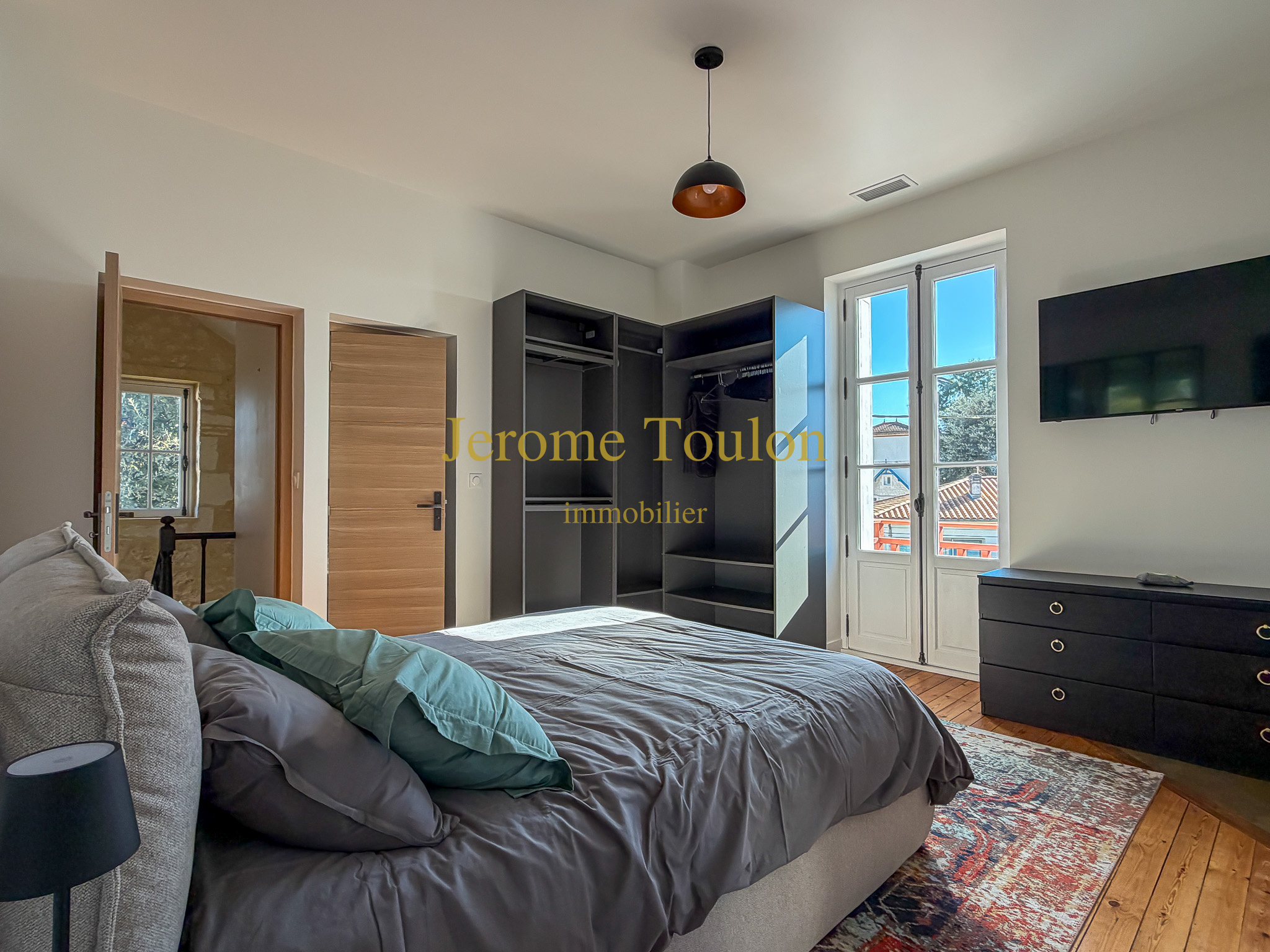Le premier étage dévoile une vaste suite parentale avec un dressing aménagé, une salle d'eau, un wc indépendant et un balcon qui permet d’admirer les villas historiques avoisinantes, une chambre d'amis et une salle d'eau privée avec son wc.
