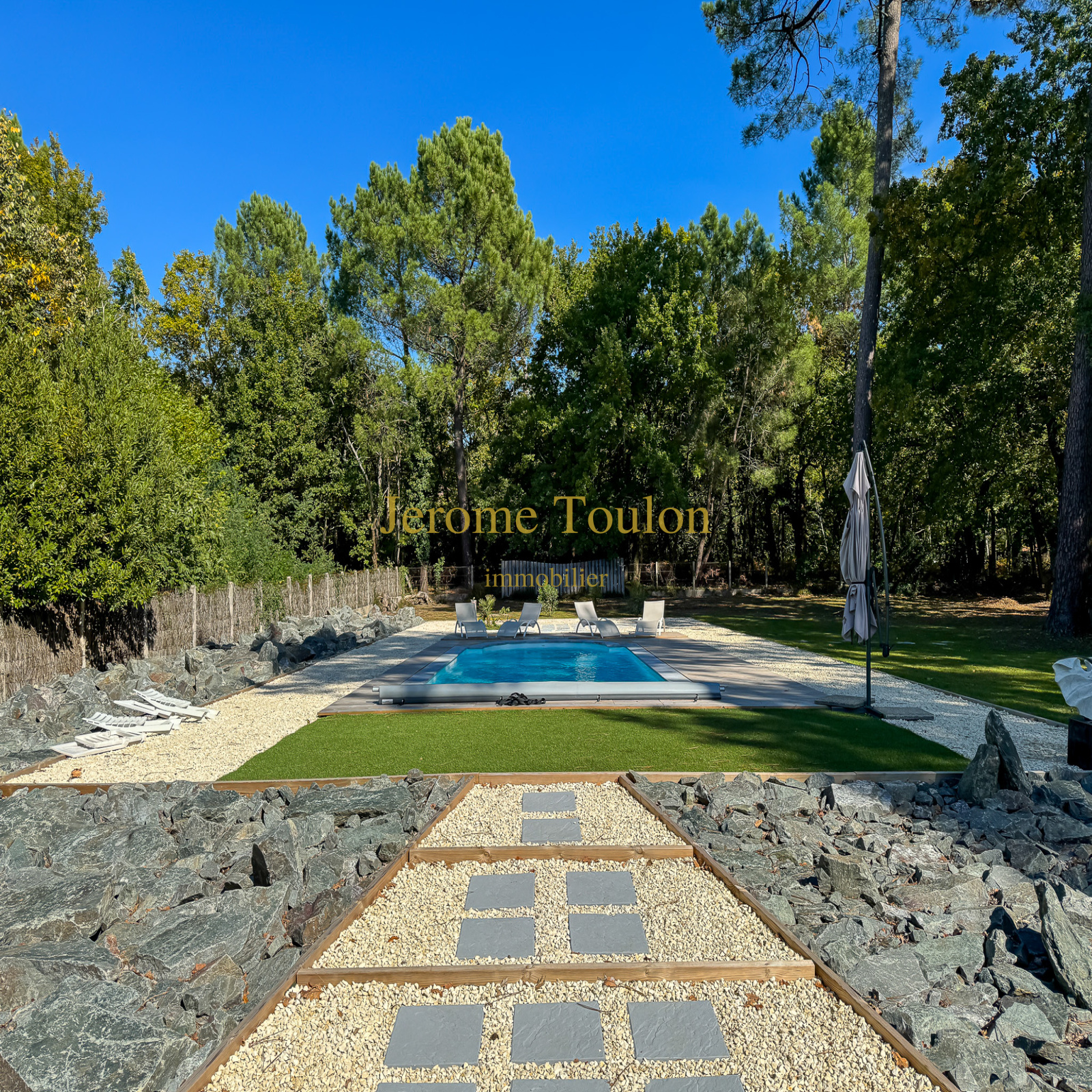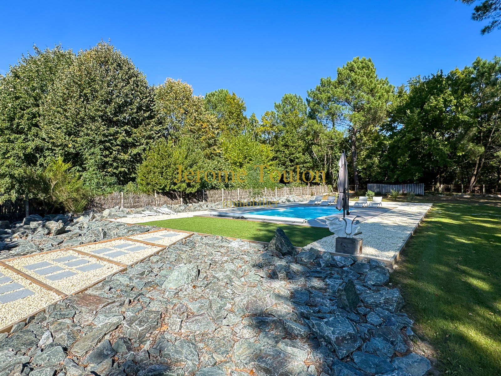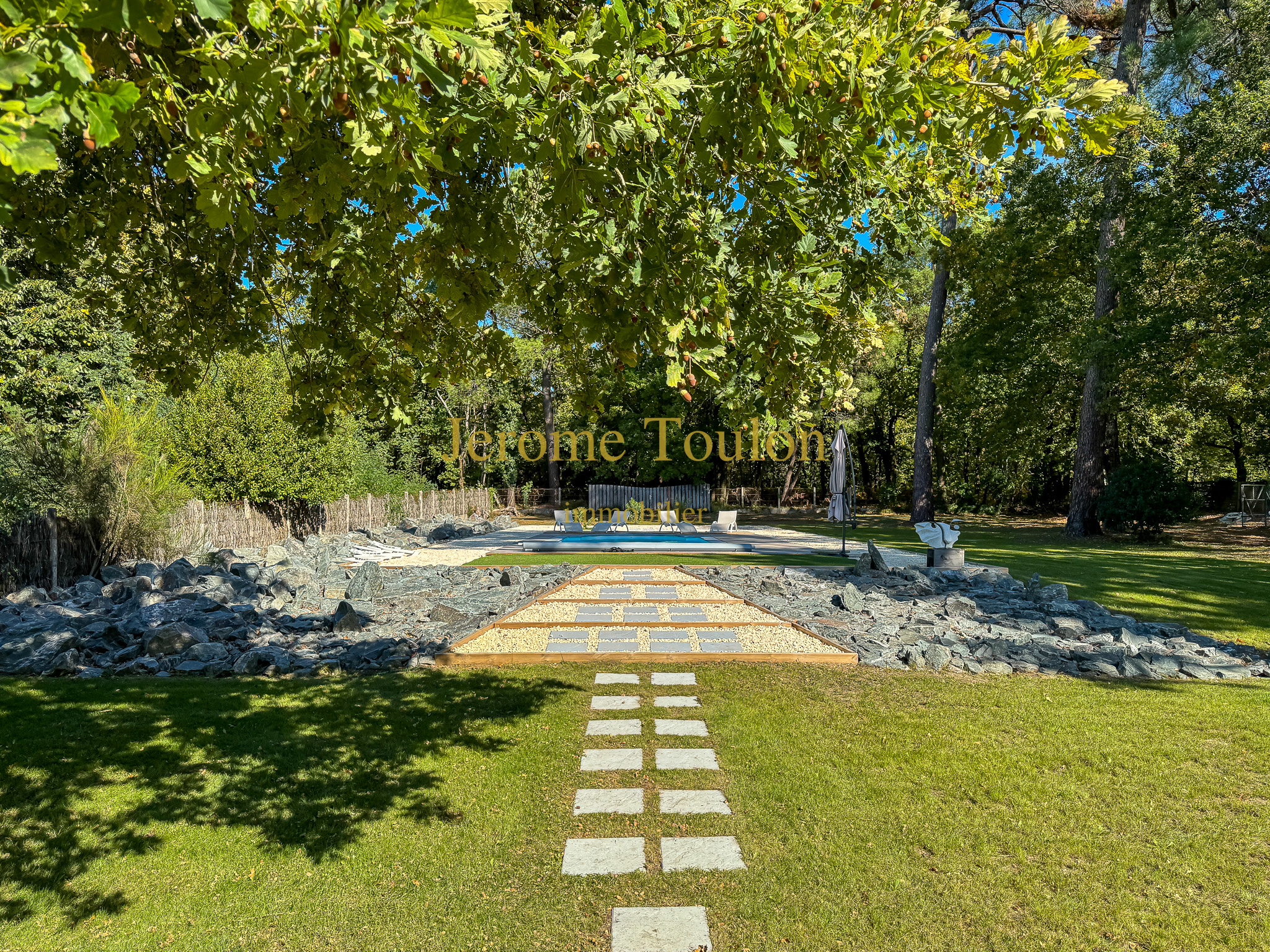 Son parc de 4741 m² avec son puits est conçu dans un esprit détente avec une abondance de végétation parfaitement entretenue. Il offre une intimité totale avec plusieurs zones aménagées avec goût, notamment autour de la piscine parfaitement implantée, à l'abri des regards toute l'année.