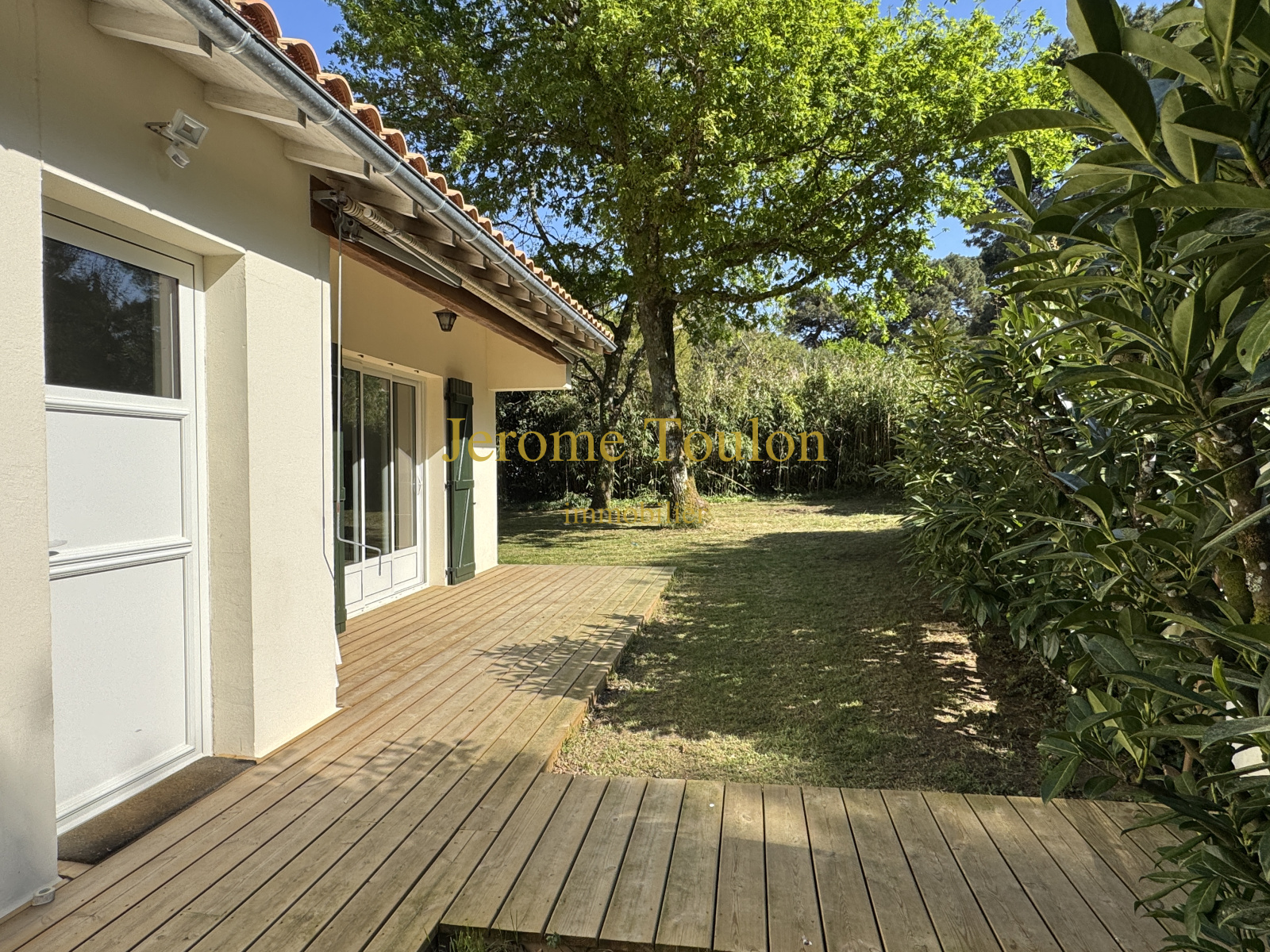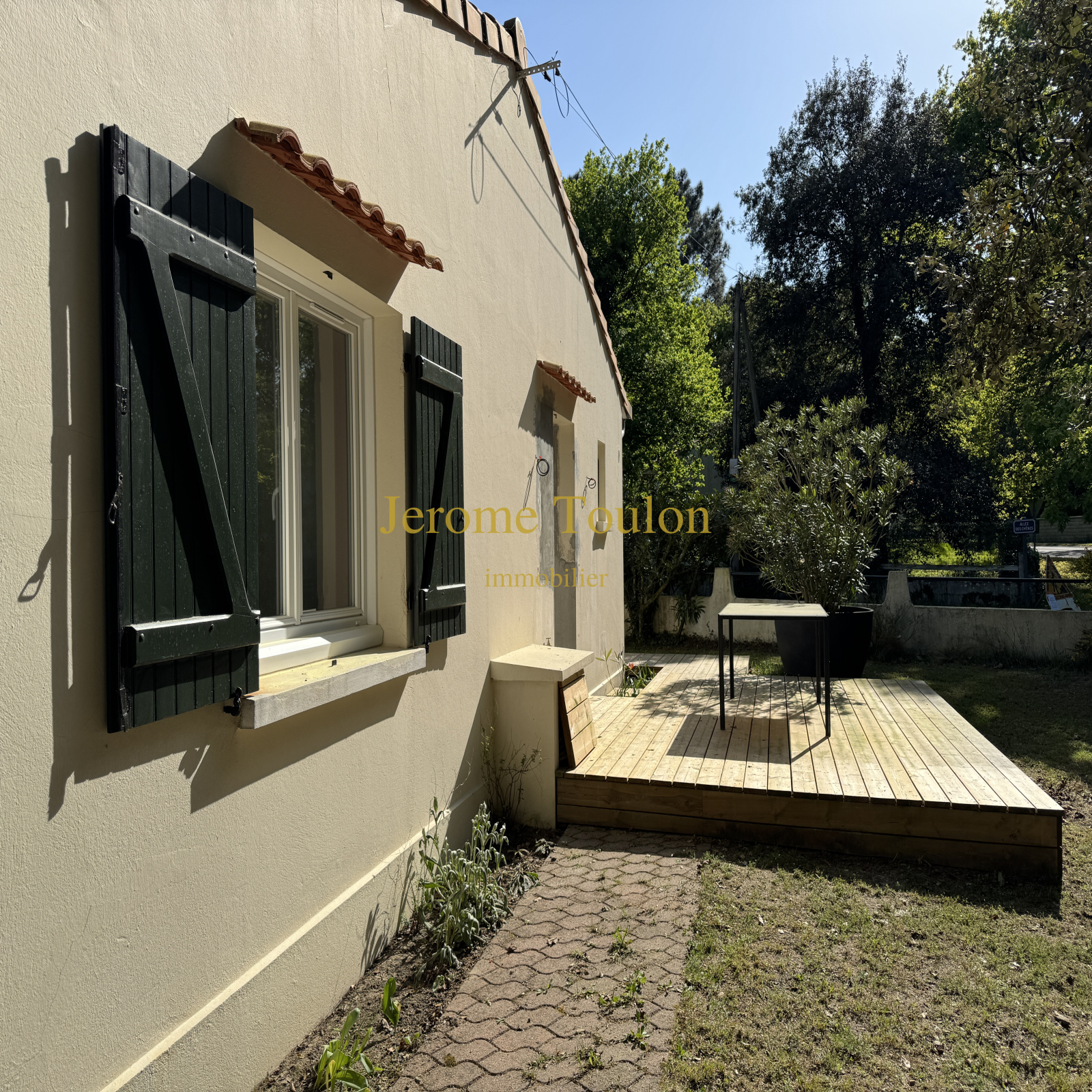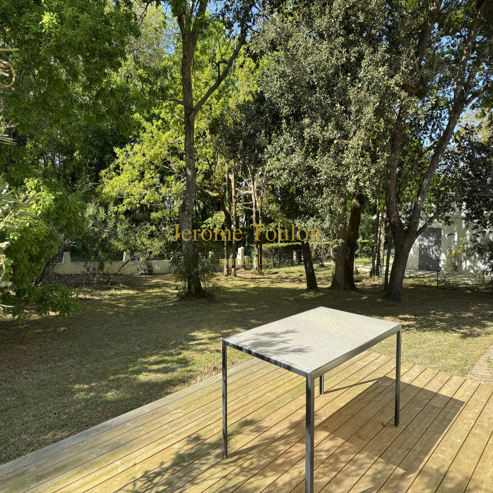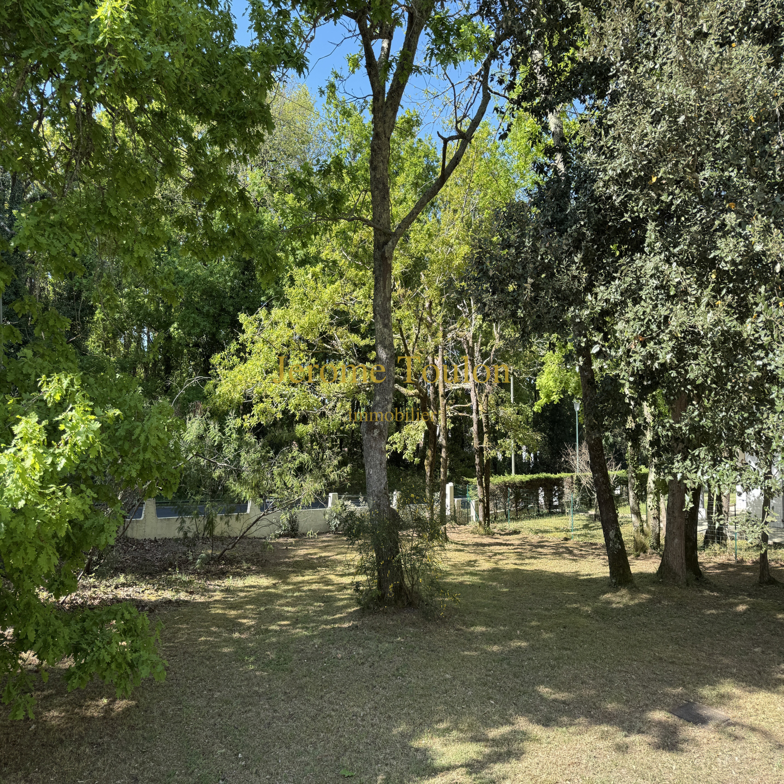 Chênes, pins, mimosas offrent une ombre bienfaisante sur ce joli terrain clos de 899 m² où l'on retrouve un garage et deux terrasses en bois.