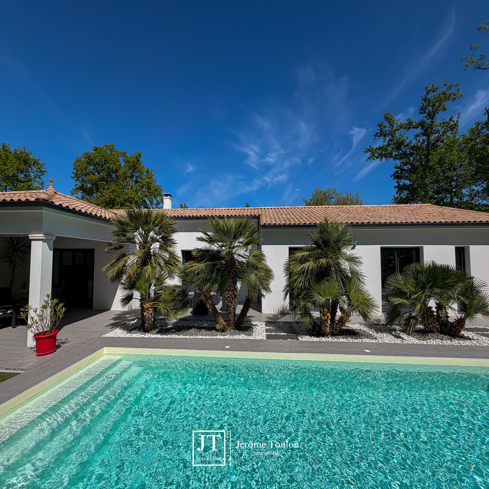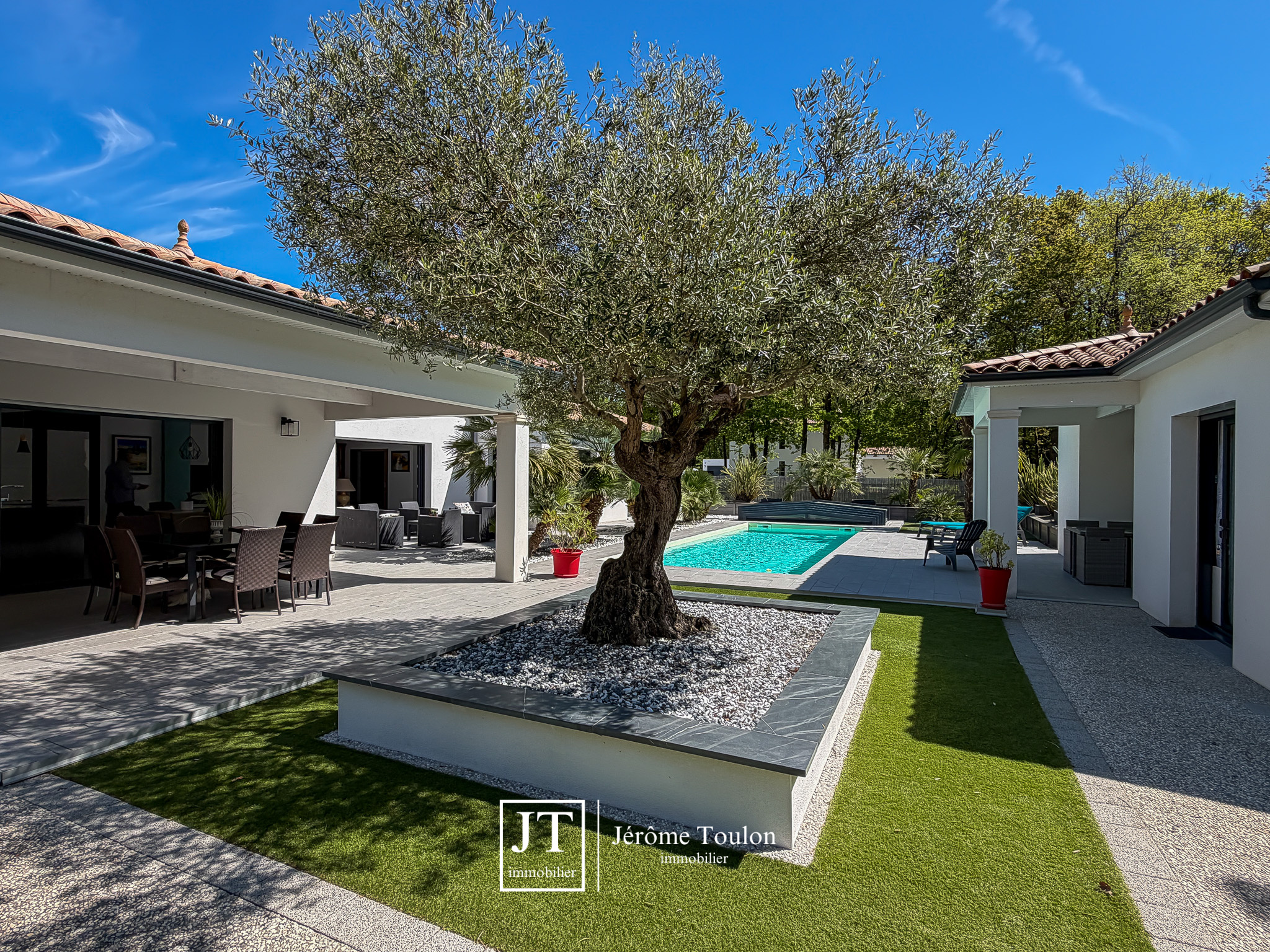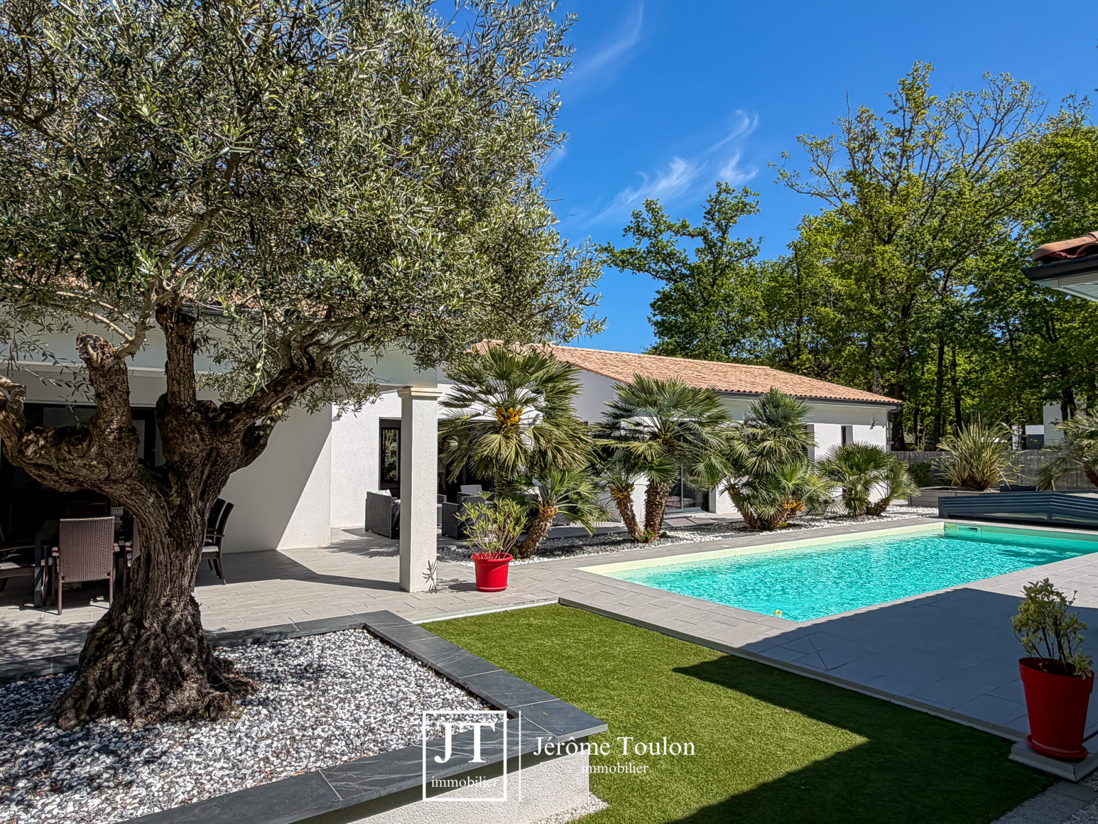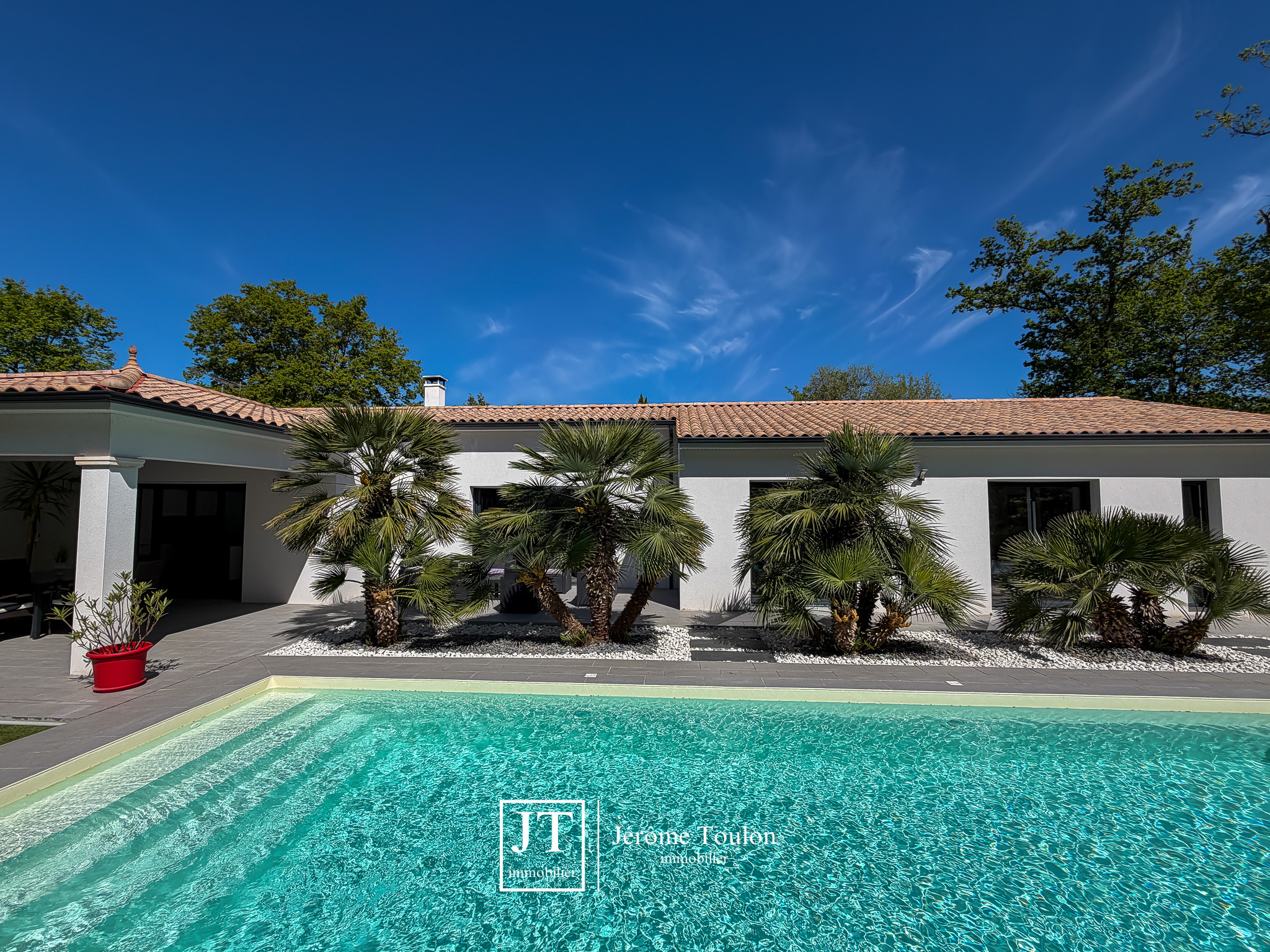 Jérôme Toulon Immobilier vous présente une villa d'exception de 197 m² habitables, entièrement de plain-pied et située dans un quartier résidentiel à seulement quelques minutes à pied du centre-ville.