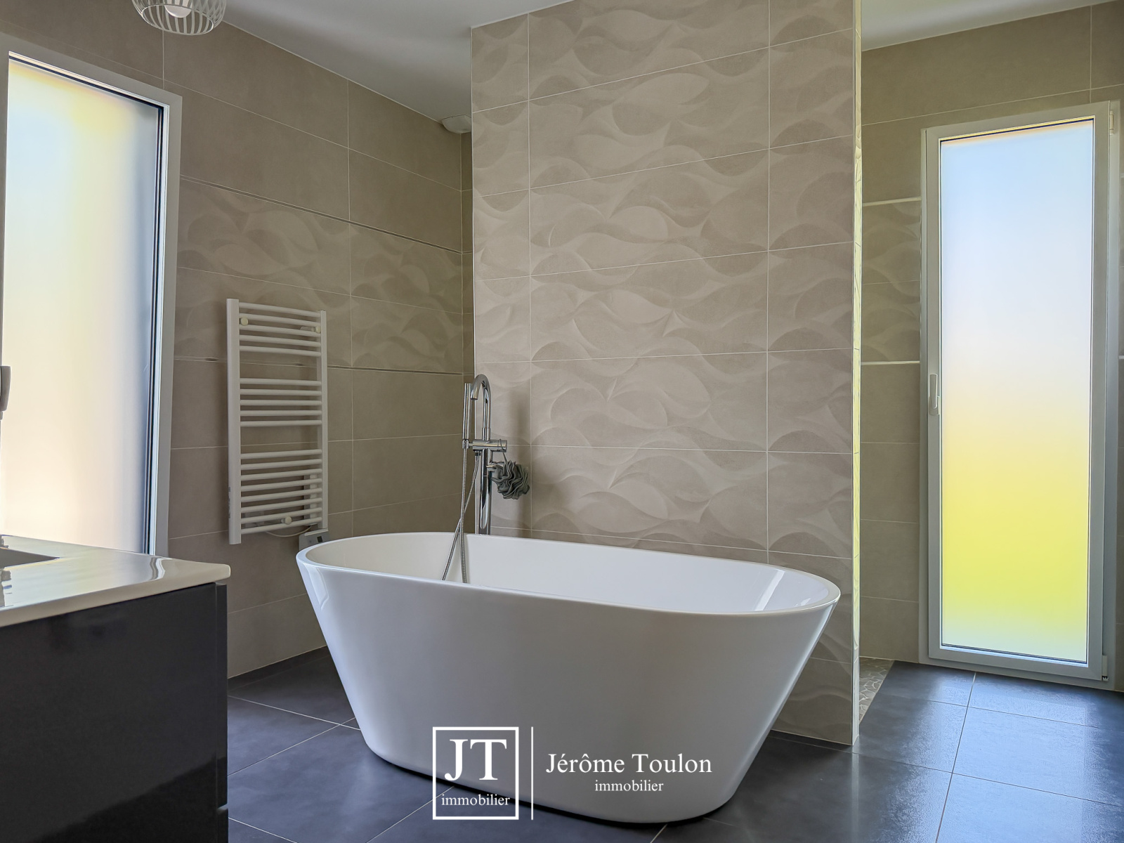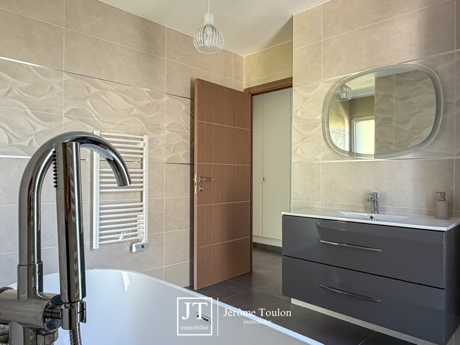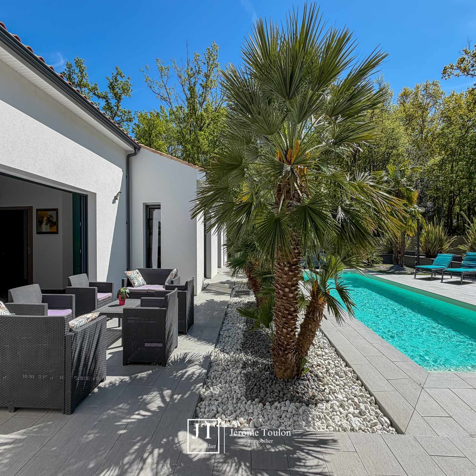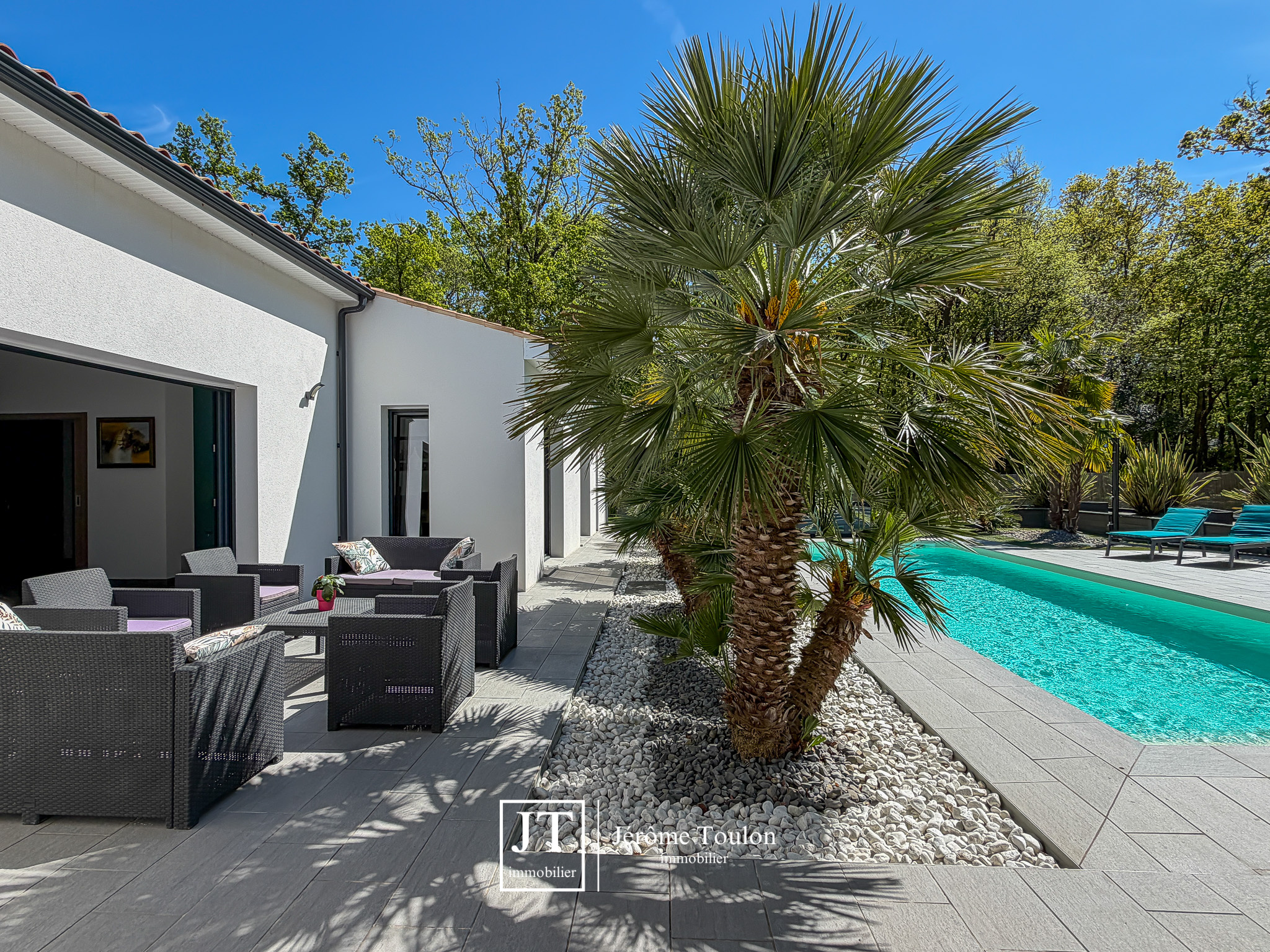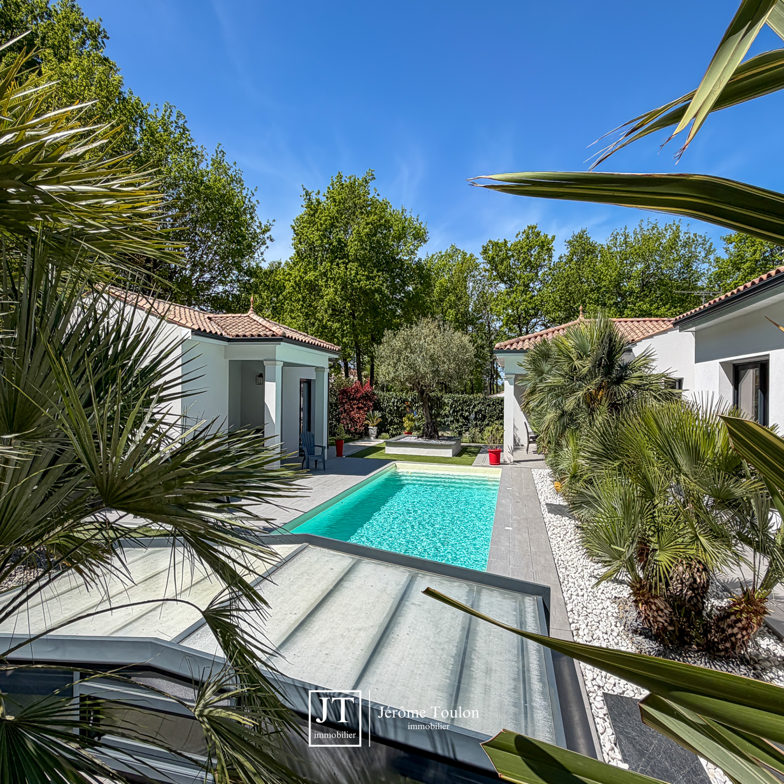 Jérôme Toulon Immobilier vous présente une villa d'exception de 197 m² habitables, entièrement de plain-pied et située dans un quartier résidentiel à seulement quelques minutes à pied du centre-ville.